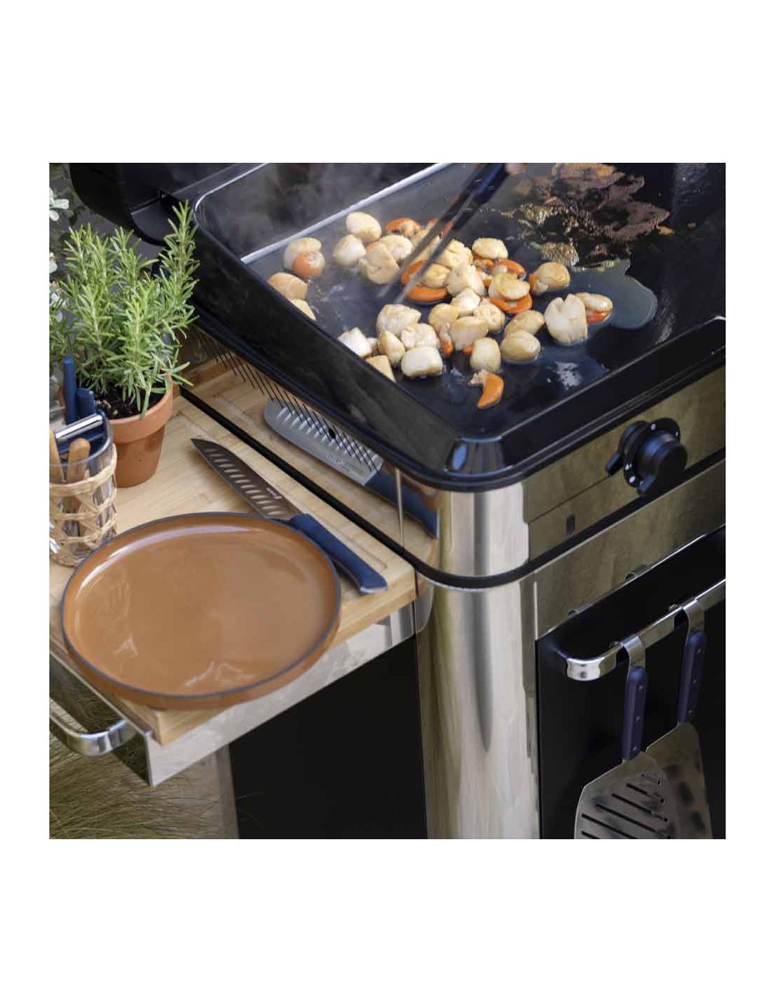 Sa grande taille permet d'éviter tout contact rapproché de la main avec la surface de cuisson.