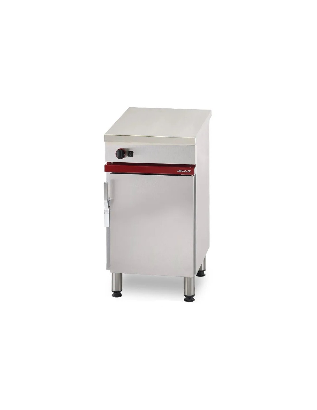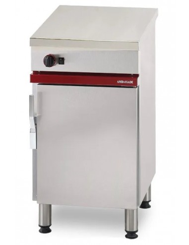 Étuve CES 606, compatible avec le four CFE 606 CT, utilisable seule ou comme support. Dotée de 8 niveaux espacés de 58 mm et de pieds inox avec vérins réglables (H 150 mm). Chauffage par résistances de 1,8 kW, thermostat réglable de 30 à 110 °C. Alimentation 230 V monophasé. Dimensions intérieures : 450 x 400 mm. Porte à charnière droite, réversible en option (avec supplément).