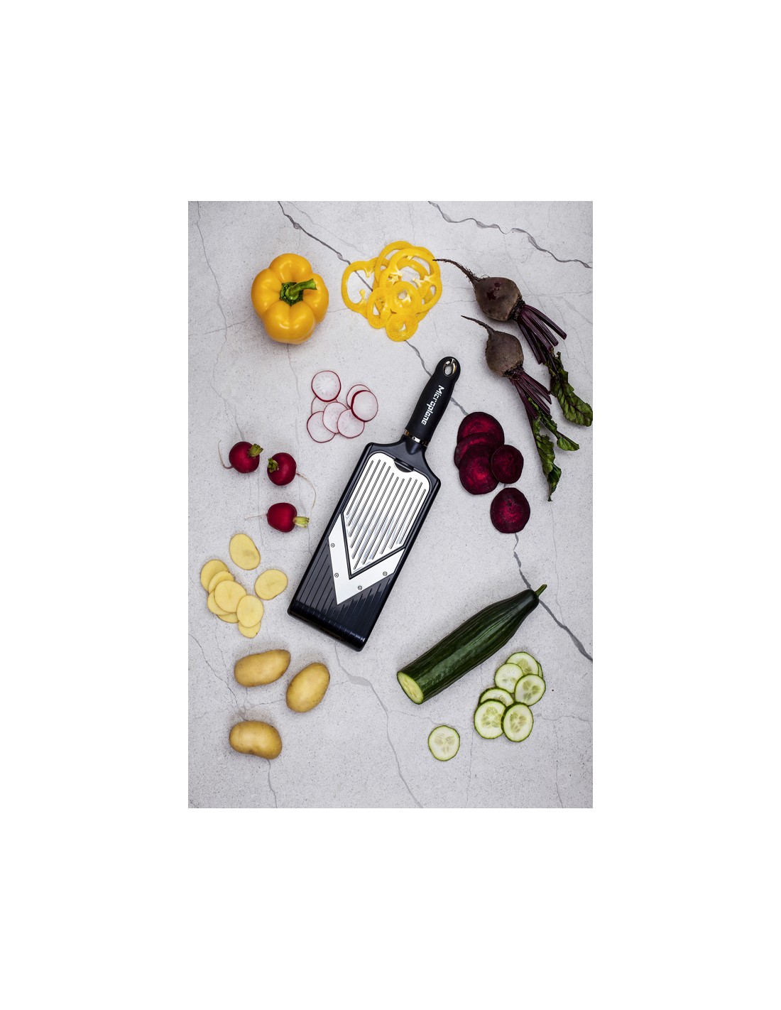Lame : céramique de zircone blancheLame longueCadre : plastique (ABS), avec protection des doigtsCoupe réglable : 0,5 mm / 1,3 mm / 2 mm / 3 mmLavable en lave vaisselleDimensions (L x l...