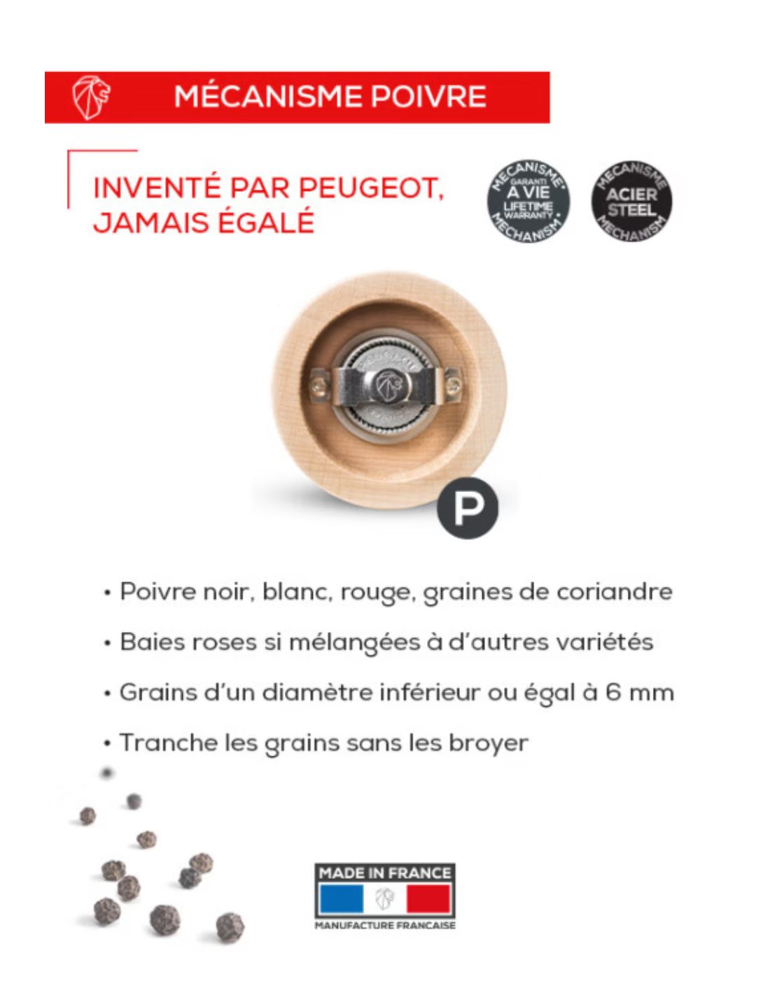 Le moulin manuel à sel “Nancy“ par Peugeot, est un modèle élégant et raffinée qui convient à toutes les tables.
