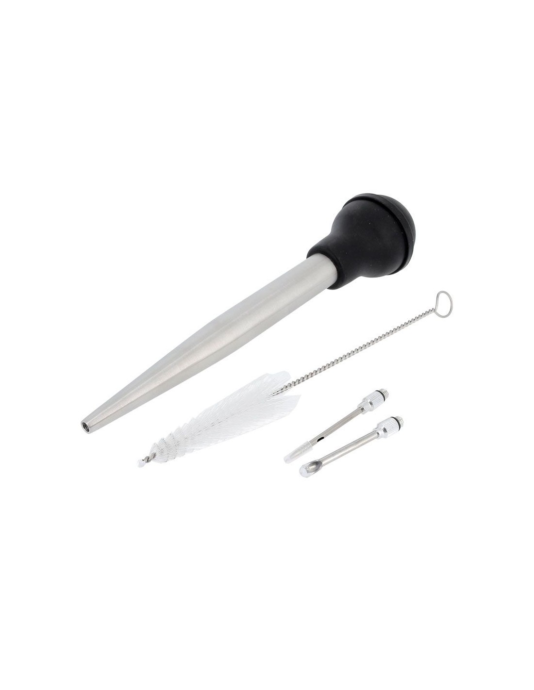 Poire à jus Patisdécor, indispensable pour arroser les viandes ou injecter sauces et liquides sans risque de brûlure. Composée d’un tube inox et d’une poire en caoutchouc, elle est fournie avec 2 aiguilles d’injection et un goupillon pour un nettoyage facile. Il suffit de visser une aiguille, aspirer le jus en pressant la poire, puis exercer une pression pour l’expulser. Idéale pour des cuissons savoureuses et maîtrisées.
